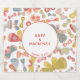 A pretty pattern of butterflies in soft green, pink, blue and yellow.