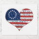 Colorida bandeira vermelha, branca e azul original de 13 estados Betsy Ross American em forma de coração, com a primeira linha do Preâmbulo da Constituição dos Estados Unidos da América.