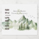 Pintura de paisagens aquáticas de árvores, aves voadoras e montes ao fundo. Ilustração serena e calma com pinheiros e silhuetas de aves voadoras. Faça uma manga divertida ou uma memória do seu dia especial com este adesivo do rótulo do frasco. Números de datas grandes na vertical, dando um layout graficamente interessante.