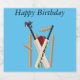 Imagem pendurada num bastão de críquete é um capacete de críquete com wickets e bola, com um feliz texto de aniversário