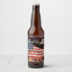 Rótulo da garrafa de cerveja com tema de 4 de julho, com uma águia careca com bandeira e fogos de artifício.