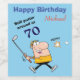 Esta etiqueta personalizada de garrafa de vinho é um presente divertido para um golfista que está fazendo os 70 grandes. Ele apresenta seu texto personalizado em vermelho, azul e preto estilizado. Atualmente diz "Ainda por volta dos 70". Um jogador de cartoon está batendo em sua bola ao lado do texto. Adicione sua mensagem de aniversário e seu nome. A imagem e o texto são colocados sobre um fundo azul brilhante. *Este design usa imagem © Graphics Fatory.com*