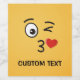 Um emoticon beijante. Um olho está aberto, o outro está piscando. Um coração é mostrado deixando a boca beijando.