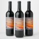 Rótulo de vinho romântico com um pôr do sol colorido numa cena de montanha coberta de neve. Bonita para casamento no inverno, noivado ou aniversário, bem como para outras comemorações de inverno.