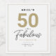 Simples festa de aniversário preto, branco e dourado "50 e Fabuloso" com tipografia elegante e elegante. Personalize-o facilmente com a idade, o nome, a data e o local da festa. Perfeito para presente de aniversário ou favor de festa.