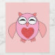Esta maravilhosa folha de rótulos de garrafa de vinho apresenta um desenho fofo de uma coruja rosa com olhos sonolentos, um pequeno bico e pequenos pés fofos. A coruja tem um grande coração de amor vermelho no meio da barriga e asas bem abertas prontas para dar um grande abraço a alguém.