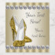 Rótulos de garrafa de vinho de aniversário de mulher com um lindo par de sapatos de salto alto dourados glitter em um fundo elegante de diamantes dourados. Você pode personalizar facilmente esses rótulos de garrafa de vinho de sapato de salto alto elegantes simplesmente adicionando o texto de sua escolha no estilo de fonte de sua escolha. Você também pode remover a camada de fundo e adicionar a cor de sua escolha.