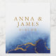 Esses rótulos de garrafa de vinho com aquarela azul e dourada modernos são perfeitos para um casamento moderno. O design contemporâneo apresenta aquarela azul com obra de arte de veios dourados.
