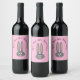 Engraçada Páscoa Coelhada Costumada Etiquetas de Vinho Rosa Personalizáveis fundo cor-de-rosa Complicável Frente Engraçada Frente: "Woo It's wine Time" em script elegante fonte Cute bunny face com orelhas grandes enfiando Excelente para o hetero para a ideia de presente na garrafa de vinho ou festa!