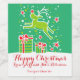 Personalize estes rótulos festivos da garrafa de vinho de Natal com o seu próprio nome, saudação e variedade de vinho. Verde de Natal divertido, design brilhante vermelho e branco de uma rena com um nariz vermelho brincando sobre presentes de Natal in a box. Ideal para oferecer vinho de Natal a família, amigos ou clientes. © Original art graphics and design por Sarah Trett. www.sarahtrett.com para www.mylittleeden.com