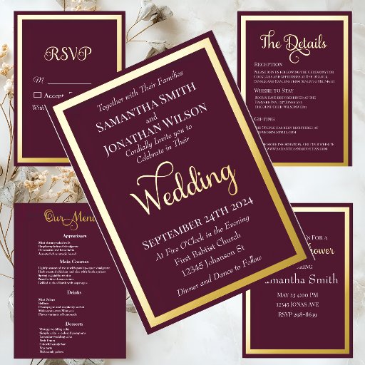 Rótulos de Vinhos Roxos Escuros, Dourados Elegante