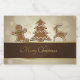 Ilustração elegante e deliciosa de Natal: Árvore de Natal de pão de gengibre decorado, homem de gengibre e veado de gengibre com estrelas de ouro sobre fundo de chavão castanho.