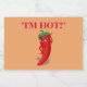 Um personagem de desenho animado de pimenta vermelho e quente. Design original. Etiqueta do contentor de comida para comidas picantes. Versão com texto personalizável e cor de fundo.