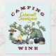 Rótulos de vinho personalizados com tema de acampamento. Uma imagem de barraca e fogueira sobre rótulos de garrafa azul claro com texto em três lugares. A redação da amostra é “vinho de acampamento” com um local para o nome do vinho ou o nome do bebedor. Também pode ser personalizado para um casamento casual para o casal que gosta de ar livre e ter seus nomes junto com o texto “vinho de casamento”.