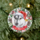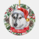 Este sofisticado Enfeites de natal cerâmico de cão rouco apresenta uma aquarela de um belo retrato de um rouco de olhos castanhos num chapéu de Papai Noel, rodeado por verduras, pinecones e bagas de férias, com um cartaz vermelho com o nome do seu animal de estimação (ou mudar para Feliz Natal). Você pode personalizar completamente esta design mudando a saudação e o ano atrás em uma fonte elegante. Este é um Enfeites de natal personalizado na moda é perfeito para fãs roucos, cães trenós, fãs de cães do Alaska, amantes de cachorros e amantes de animais de estimação.