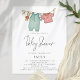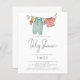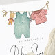NOTA: há duas opções de papel a escolher para este tamanho (4,5 x 5,6") na faixa de Orçamento. Para este produto, eu recomendaria o semibrilho, que é um estoque de cartão de 110 gsm, semelhante em espessura a um cartão postal. A opção Satin é um papel muito mais fino, 80gsm. O padrão é definido como semirbrilho. POR FAVOR, NOTE que existe UM por folha. *** Orçamento Boho Chic Clothes on Washing Line Chá de fraldas. chá neutro em relação ao gênero com um script informal definido para o Chá de fraldas e o resto do texto que você pode personalizar facilmente.