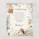 Livros de roupas de menino coelho para chá de bebê. Um preço acessível menor que 4,5" x 5,6" alternativa de papel para os enclosures dos seus Livros para Bebê. Este design estilo vintage tem um coelho fofo em um chapéu espiando por trás de flores e folhagens e um conjunto de roupas de menino pendurado no galho de uma árvore, em um fundo creme. Você pode personalizar facilmente todo o texto de acordo com as suas necessidades. Um fundo colorido coordenado está no verso.