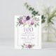 Roxa | Violet Floral 100º Convite de Aniversário