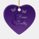 Recorde seu dia especial com este coração floral roxo bonito primeiro ornamento cerâmico dado forma da lembrança do Natal junto com as borboletas e as flores do cinza de prata nele. Você pode personalizar o texto para dizer o que quer que você quer. O **** seja POR FAVOR certo que seu texto está colocado onde você o quer, porque imprimirá para fora como aparece em seu monitor. Zazzle não corrigirá qualquer coisa. Igualmente combina o convite do casamento mostrado abaixo. Se você precisa algum auxílio, envie por correio electrónico por favor niteowlstudio@gmail.com.