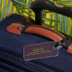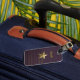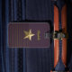 Roxo com etiqueta de bagagem Dourada