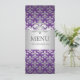 Design elegante do "menu" do casamento com texto roxo e feito sob encomenda romântico da flor de lis. Imprima seus família e amigos com este design à moda e moderno. Inteiramente customizável! Fácil de usar e fácil personalizar.