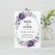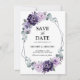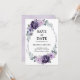 Elegante e moderno meio do verão floral salvo o cartão de data apresenta um buquê de pessoas rosas de aquarelas em tons de ameixa roxa, rosa poeirento, rosa poeirento, mauve, sábio com folhas botânicas esverdeadas e eucalipto com fundo geométrico de prata. Por favor, encontre mais designs e variações na minha loja de "blisswedingpaperie". E fique à vontade para me contactar para mais personalizações ou itens correspondentes.