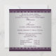 Seu amor foi escrito nas estrelas? Este os lapis dramáticos roxos e o convite do casamento das cinzas de prata têm FALSO de prata central removeable um medalhão gravado do olhar com o deus Hindu Ganesh nele, junto com um grande teste padrão de prata central do círculo do rolo nele com ornamentado rodaram os corações que detalham nele com estrelas e os pontos de prata que colocam sobre a parte superior de um profundo - fundo roxo com uma outra camada de redemoinhos roxos mais brilhantes finos e rolos nele. Há igualmente uma banda de prata do tom através da parte inferior do convite que tem os nomes dos noivos nela. O **** NOTA POR FAVOR que nenhuns dos elementos neste convite estão levantados ou gravados. Tudo é imprimido horizontalmente. Este convite seria perfeito para um primavera, um verão, uma queda, ou uma cerimónia do indiano do inverno, a Hindu, a sânscrito, ou a muçulmana de casamento, e igualmente trabalharia bem para outros eventos formais que exigem a classe e o gosto. Mostra-se aqui no papel básico. Se você quer um papel mais pesado do peso, eu sugiro o gelo metálico, que lhe daria um brilho opalescent bonito. Eu não sugiro usar o papel de prata metálico, porque é uma prata MUITO escura que altere realmente o design. TAMBÉM, se você re-size o convite, ou se você muda pias batismais, ou o tamanho da pia batismal, algum do design e/ou o texto podem obter a interrupção. Tudo imprimirá como você o vê em seu monitor. Eu não verei seu convite, e Zazzle não corrigirá qualquer coisa (erros tipográficos, alinhamento etc.). O texto e o papel são toda customizáveis. Se você precisa a ajuda com este convite, envie-me por correio electrónico por favor ANTES QUE você coloque sua ordem. Se você exige quaisquer outros artigos de harmonização, ou gostaria de quaisquer outros elementos do design adicionados a ela, tal como um símbolo etc., ou se você o precisa em uma outra língua, envie por correio electrónico por favor seu pedido a niteowlstudio@gmail.com.