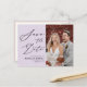 Cartão Postal de Anúncio de Convite de Casamento Minimalista Moderno com Foto e Escrita Elegante Roxo Mauve. Deixe sua família, amigos e colegas saberem que você definiu uma data para a celebração do seu casamento com este convite elegante, sofisticado e moderno. Todos os textos estão pré-arranjados para você personalizar fácil e rapidamente com seus próprios detalhes.