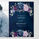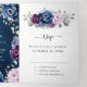 Elegante convite de casamento com tema floral lilás lavanda roxo azul poeira, apresentando um buquê elegante de botões de flores de rosa roxas, azul poeira, lilás e folhas de eucalipto verde salvia. Por favor, entre em contato comigo para qualquer ajuda na personalização ou se você precisar de qualquer outro produto com este design.