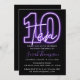 Roxo Neon 10º Convite de Aniversário