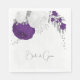 Romântica, roxo real e flores brancas com folhas prateadas, papel botânico para casamentos.