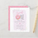 Roxo | Rosquinha Orçamentária Sprinkle Doces Convites Para primeiros aniversarios. O primeiro aniversário é definitivamente muito especial, então comemore o primeiro aniversario de sua garotinha com nossos convites únicos e divertidos! Apresentando uma rosquinha cor-de-rosa com borrifo colorido mostrando "UM doce" no topo. Os detalhes do seu partido são mostrados em tipografia fofa e de tendência contra uma camada de água púrpura pastel. Inverter para um fundo rosa brilhante com aspersores.