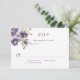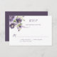 Buquê floral de aquarela em placas RSVP roxas e verdes, ricas em escuridão. A parte de trás do cartão está roxa. Os detalhes do seu convidado são apresentados com uma mistura de caligrafia e texto moderno. Se precisar de ajuda ou quiser que este design num produto correspondente, por favor contacte-me através da minha loja.
