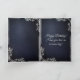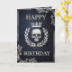 Um cartão de aniversário azul luxuoso e escuro, adorado com alivio real de prata gótica, apresentando um ameaçador crânio metálico de prata flanqueado por uma coroa de louros brilhantes folhas de prata e, finalmente, uma gloriosa coroa prateada brilhando com uma luz pálida brilhante simbolizando uma antiga linhagem real. Perfeito para um aniversário com tema real com um toque gótico real. A carta perfeita para amantes da bruxaria escura e oculta, arcaica e macabra.