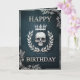 Um cartão de aniversário de couro ciano-luxuoso e escuro adorado com alivio de prata gótica real apresentando um ameaçador crânio de prata, flanqueado por uma coroa de louros brilhante de folhas de prata e, finalmente, uma gloriosa coroa prateada brilhando com uma luz pálida brilhante simbolizando uma antiga linhagem real. Perfeito para um aniversário com tema real com um toque gótico real. A carta perfeita para amantes da bruxaria escura e oculta, arcaica e macabra.