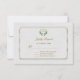 Símbolo da elegância, abundância e loftineza! Design de cartão único com uma crista real de folha de ouro falso, uma armação delicada, ramos de azeitona com flor branca, sobre fundo branco texturizado. Use a ferramenta Personalizar para adicionar suas informações. Por favor, visite minha Coleção Real de Casamentos de Crest Lush Greenery, Dourada.