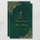 Real Emerald Green - Dourado Cartão de Menu de Casamento Islâmico Floral. Este cardápio de casamento é realmente elegante! A frente tem um belo fundo verde esmeralda com delicados florais de ouro. A caligrafia é requintada, começando com 'Bismillah' e a frase árabe 'wa khalaqnakum azwaja' (que significa 'E nós criamos você em pares'), seguida dos nomes dos casais, da data do casamento e do local. O verso também é esmeralda verde, e ele exibe elegantemente 'O Menu' no topo. O cardápio em si é belamente apresentado na caligrafia dourada, listando todas as deliciosas iniciações, cursos principais e sobremesas. É um toque muito especial para sua celebração de casamento