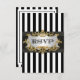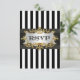 Black & White Stripe, Black Ribbon, Dourado Framed Label Invitation Suite - RSVP 2 Este design personalizável apresenta faixas pretas e brancas, uma faixa preta e uma etiqueta branca de gradiente em uma estrutura de aparência dourada. É parte de um conjunto de designs compatíveis que são facilmente personalizáveis para muitas ocasiões e eventos. Se você precisar de placas RSVP separadas, Notas de agradecimento, Carimbos, ímanes ou outros acessórios, por favor verifique nossas outras listas. Se você não vir um produto correspondente ao qual você está interessado, ou gostaria de ver esse design em cores diferentes ou com fotos diferentes do NYCisMyMuse que você vê em nossa loja, entre em contato conosco e ficaremos felizes em acomodá-lo. Observe que este é um design gráfico e não contém tecidos, metais ou relevo reais.