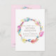 Penas e miçangas de dois lados, simples e modernas, de cor d'água, com bênção, RSVP. Personalize com seu próprio nome e detalhes de resposta. Fundo branco na frente e rosa claro no verso. Bonito tons coloridos de um círculo de penas cordas e de esferas de vidro. Outros itens correspondentes disponíveis. Arte com aquarela original e design por Sarah Trett para www.mylittleeden.com