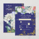 © Socialite Designs & LICENSORS. O ouro elegante floresce, com fundo azul roxo / real, RSVP de casamento com florais de aquarela, em branco, roxo/azul, rosa e verde, pronto para ser personalizado para o seu evento especial. O estilo da fonte, o texto e o tipo de papel podem ser alterados. Precisa de ajuda para personalizar ou adicionar produtos com este design? Por favor, não hesite em contactar Designs socialitas.