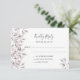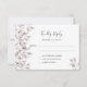 Um cartão RSVP elegante e simples para um casamento com modelos para resposta por data e nomes. Um fundo branco chic na frente. Decorados com esférulas botânicas e folhagem de cor aquosa de rosa poeirento. O título Resposta Rápida é escrito com um grande script de estilo manuscrito moderno. Fundo: fundo rosa, cor de poeira, cinzas escuras.