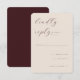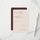 Este cartão de RSVP de casamento apresenta um design minimalista com um fundo bege suave, criando uma aparência elegante e descomplicada. O layout inclui amplo espaço negativo, melhorando a legibilidade e sofisticação. Uma fonte de letra cursiva fluida destaca a frase "por favor, responda até 1 de agosto", enquanto fontes sem serifa fornecem opções claras para respostas como "aceita com prazer" ou "recusa com tristeza". Espaços personalizáveis permitem a personalização, tornando-o perfeito para eventos formais que exigem um toque de classe e simplicidade.
