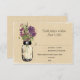 Perfeito para um casamento no estilo country ou talvez você apenas ame Mason Jars! Uma cor de fundo creme angustiada com desenho preto de um Mason Jar repleto de Plum, Framboise Violet e flores selvagens verdes do país. Se tiver alguma dúvida sobre este design ou quiser uma mudança de cor, envie-me um e-mail para paula@labellarue.com SE PRECISAR DE UMA OPÇÃO DE MENU ADICIONADA OU DE INFORMAÇÕES ADICIONAIS QUE ME PERMITAM SABER. Verifique também se o cartão de CONVITE e RECEPÇÃO WEDDING corresponde!