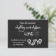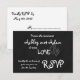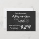 Cartão de Confirmação de Casamento Amor Romântico | Quadro de Giz. Elke Clarke. Cartão de confirmação de casamento em quadro de giz fofo e divertido em preto, cinza e branco, a palavra Amor em uma fonte caprichosa branca e dois Corações entrelaçados. Um design de confirmação de casamento moderno que é totalmente personalizável e combina com o convite de casamento na loja. Outras cores disponíveis