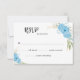 Complete seu conjunto de papelaria de casamento com nosso cartão de RSVP de casamento com Flores Florais Azuis Elegantes. Projetado para complementar perfeitamente nosso convite de casamento correspondente, este cartão de RSVP apresenta o mesmo belo padrão floral azul em um fundo branco imaculado. O design elegante e a atenção meticulosa aos detalhes tornam este cartão de RSVP uma adição deslumbrante ao seu conjunto de casamento. Com seu formato de resposta conveniente e detalhes personalizáveis, ele permite que seus convidados confirmem facilmente sua presença e forneçam qualquer informação necessária. Estabeleça um tom sofisticado e coeso para o seu casamento incluindo este cartão de RSVP elegante no seu pacote de convites. Seus convidados apreciarão o toque atencioso e elegante ao responderem ao seu dia especial.