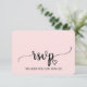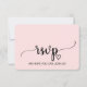 Este cartão de confirmação de presença e pedido de música com caligrafia simples rosa é perfeito para um casamento elegante. O design apresenta uma fonte cursiva fluída romântica e doce em um lindo e delicado fundo rosa claro. Construa sua lista de convidados e a lista de músicas da pista de dança de uma vez! Este cartão-postal de resposta de casamento convenientemente pergunta aos convidados se eles poderão comparecer ao seu casamento e também qual música os fará dançar.