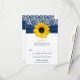 Cartão de resposta de confirmação de presença para casamento floral de damasco azul naval e girassol amarelo com fita. Você pode personalizar todo o texto. Para alterar o texto, use as opções de personalização. Ou para alterar a fonte, o tamanho da fonte, a cor da fonte ou a colocação do texto, escolha personalizá-lo. NOTA: Este é um design impresso plano, sem quaisquer adornos 3D ou em relevo.