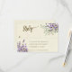 Um lindo desenho de flores lavanda boho em um fundo marfim. Use este cartão de RSVP coordenador para encorajar seus convidados a responder prontamente! Edite os campos de texto disponíveis para atender às suas necessidades, para criar o conjunto de casamento perfeito. Outros itens e papelaria nesta coleção, como adesivos de favor, cartão de informações, números de mesa, etc.! Perfeito para casamentos e eventos em qualquer época do ano. Um design muito elegante.