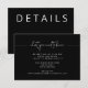 Cartão de detalhes do casamento elegante e editável para o casamento preto e branco moderno.