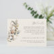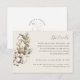 Encontrem os detalhes de sua celebração boêmica com este algodão de aquarela boêmia e o Cartão de Detalhes do eucalipto. A frente ostenta um pano de fundo bege de algodão macio, enfeitado com um buquê rústico mostrando a beleza encantadora das caixas d'água e do eucalipto. O dorso tem um monograma opcional.